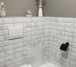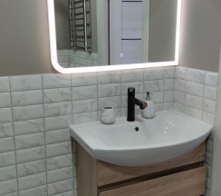 ⦁ чистая современная ванная комната с феном, свежими полотенцами и гигиеническими принадлежностями;