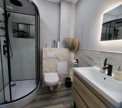 - Удобный санузел с душем ( туалетные принадлежности: жидкое мыло, шампунь, гель для душа, зубной набор, бритвенный набор, фен, полотенца, тапочки);