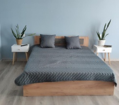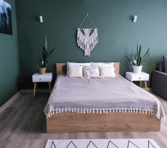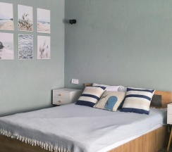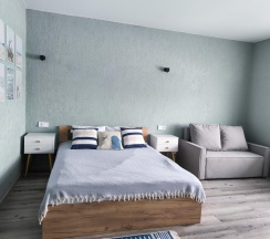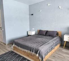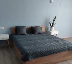 - Большая двухспальная кровать с ортопедическим матрасом;