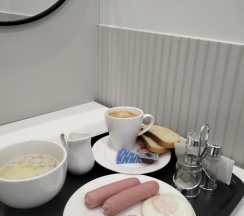 Небольшой отель подошёл устроил по тарифу для командировки. В стоимость включили завтраки. Завтрак питательный и вкусный, я все осилить не смогла. Можно самой выбрать состав, я брала овсяную кашу, яишенку, сосиски, кофе сваренный. В номере чисто, уютно, современный ремонт. Из техники кондиционер, телевизор, холодильник, чайник, фен. Предоставляют гигиенический набор. Приветливый персонал. В шаговой доступности красивое озеро с благоустроенной набережной. Транспортом не пользовались, только такси. Все понравилось