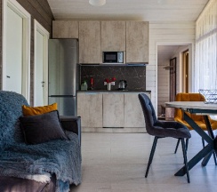 Прекрасно и очень стильно обустроенный дом! Две небольшие спальни и общая кухня-гостиная. Всё есть для комфортного проживания.