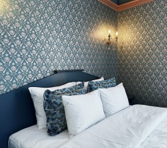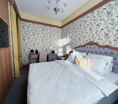 В самом сердце дома, окна которого открываются в тихий Вологодский дворик, расположены пять абсолютно очаровательных комнат. Эти теплые и уютные номера предназначены для тех, кто ищет покой и тишину, с восхитительными намеками на милую старину. В каждом из этих уютных номеров ощущается неповторимый дух начала прошлого века, который находит свое воплощение в атмосфере знакомых исторических деревянных стен, ярких бумажных обоев, а также в мебели из натурального дуба с зеркалами в лаконичных деревянных рамах.
