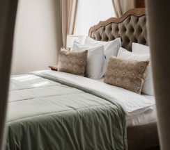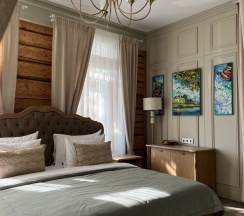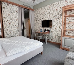Старинное великолепие и романтическая атмосфера сочетаются в пространстве этого уникального двухкомнатного номера, где каждая деталь рассказывает свою историю. Здесь вы почувствуете, как время замедляет свой бег, а тепло старинного купеческого дома обволакивает вас с первых минут.
