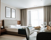Проживали с 31.12.24 по 2.01.25, в связи с техническими причинами не получилось заселиться в номер, который бронировали. Администратор предложила нам переселиться в номер намного больше нашего, спасибо за решение проблемы. Номер оказался просторным трехместными с собственной кухней. Нам все очень понравилось! Дружелюбная администратор принесла нам подарок от отеля: вкусное шампанское и янтарное мыло. На следующий день накормили завтраком с кофе. Это лучший отдых, особенно в Новый год 💜 спасибо!