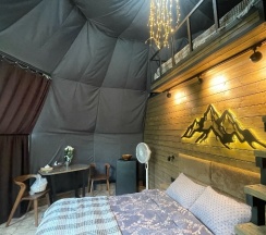 Отдыхали с 26 на 27 апреля в купольном домике Шишка, в целом все понравилось. Администратор по телефону оперативно отвечалана на все интересующие вопросы. В самом домике чисто и уютно, есть все необходимое для комфортного проживания, в стоимость проживания включено помимо домика, мангальная зона, решётка, угли и розжиг, а также бассейн. Бассейн к слову не большой и уютный, и если своей компанией то вполне комфортно.