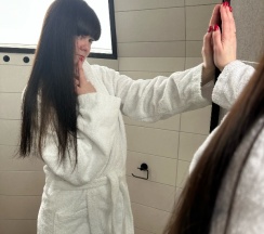 Но вот несколько примечаний к раздевалке: крючки для одежды отсутствуют это минус, пол огненный очень радует но сильно долго не постоять но это все равно плюс, не хватило душевой, чтобы сполоснуться сразу после бассейна - это минус, и туалета тоже не хватило, приходится бежать в домик, что не очень комфортно - это тоже минус.