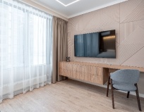 Шикарные апартаменты. Восхитительный вид из окна, прекрасный ремонт, есть любая мелочь, которая тебе может понадобится в квартире. На мебели и технике не экономили, есть даже встроенный фильтр для питьевой воды. Чисто, аккуратно. Видно что о клиентах заботятся. Приветливый персонал. На первом этаже есть хорошее кафе, в котором от апартаментов скидка. Вообщем апартаменты полный восторг. Первый раз испытал подобные чувства от проживания в отеле.