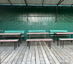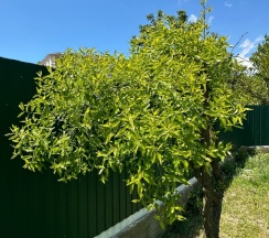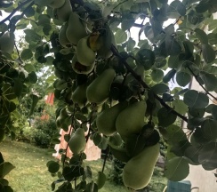 Территория вся в зелени и много плодов.Есть мангальная зона.
