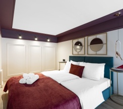 Номер Люкс с интересным дизайнерским решением для 1-3 гостей. В номере есть ванна и кровать king-size (180 см). Площадь номеров в категории от 23 до 25 м². Помимо двуспальной кровати в номере есть раскладное кресло, на котором может разместиться 1 гость.