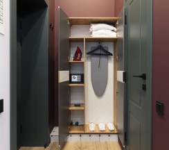В апартаментах есть всё для комфортного пребывания: двуспальная кровать 180 см и раскладное кресло-кровать, ортопедический матрас, свежее бельё, тихий кондиционер и плотные шторы, кухонная зона с мини-холодильником, чайником, мультиваркой, набором посуды, бесплатный Wi-Fi, ЖК-телевизор с Кинопоиск, гладильные принадлежности, собственная ванная комната, полотенца, тапочки, халаты, средства гигиены, фен.