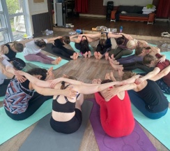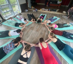 В центре "Радость" есть свои коврики, подушки для сиденья, особенные натуральные пледы и хорошая колонка. Все, что нужно для проведения хорошего йога класса.