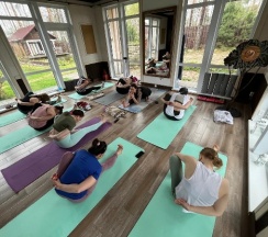 Были с 2-4 мая на ретрите. Это волшебное место, чтобы отдохнуть душой и телом. Просыпаешься утром в красивом номере на белоснежных простынях, выходишь во двор послушать пение птиц. Глаза отдыхают от взгляда на небо и сосны, либо смотря на пруд с рыбками. Отличный отдельный зал для практик с теплым полом и всем необходимым для йога практик. Баня и хамам, бассейн и вкусный чай. Отдельная история это питание - такой вкусный суп пюре из тыквы, я еще не ела. Добродушная и всегда открытая к решению вопросов хозяйка Наталья, располагает к дальнейшему сотрудничеству. Ретрит центр Радость, жди нас еще в гости. Нам у тебя понравилось.