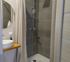 Уютный отель рядом с набережной. Небольшая комната с удобной кроватью, тумбочка и и вешалками. Здесь же санузел с душем. На 4 номера есть уютная кухонька со всеми принадлежностями и холодильником. А рядом столы для еды и парогенератор. Все новое.