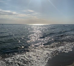 Море утром чистое, можно купаться в купальнике. Лучше плавать напротив беседки. Там рукой найти большой камень, его переплыть и сразу песок. В других местах могут попадаться камни. Вечером мы ездили в Каспийск, поэтому не могу сказать какое море.