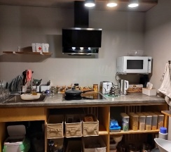 Здесь в общем доступе есть кухня, каши, молоко, яйца, в общем все для завтрака. Также вы можете постирать вещи, все в общем доступе все имеется.