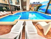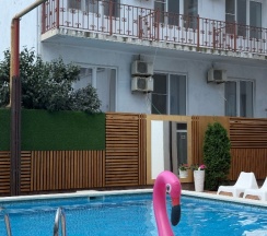 Хороший отель, уютные номера, чистый и теплый бассейн. Для автомобилей есть парковочные места. Рядом есть магазин и столовая. До моря минут 15 не быстрым шагом. Спасибо Александру за гостеприимство и быстрое решение всех вопросов!