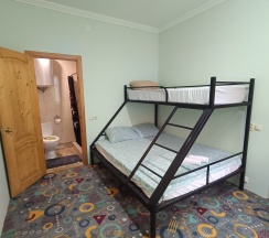 Максимальная вместимость 3 человека (двухъярусная кровать: нижнее спальное место 160*200, верхнее спальное место 80*200).