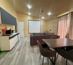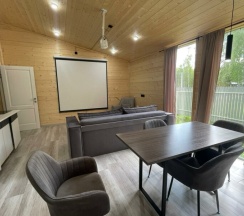 🎥 Если вы приедете с детками или друзьями, в гостиной предусмотрен диван, на котором можно не только отдыхать, но и устраивать кино-вечера, ведь в вашем домике есть персональный кинопроектор! В каждом домике есть сеть WIFI.
