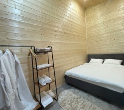 🚿 Для ухода за собой есть большая душевая кабина с теплой водой и туалет, раковина и большое зеркало с подсветкой. Полотенца, фен, одноразовые тапочки, эко-косметика предусмотрены для каждого гостя.
