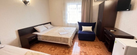 К вашим услугам комфортный номер, рассчитанный на трехместное размещение. Каждый номер оборудован всем необходимым: удобная мебель, сплит-система, ЖК-телевизор, холодильник, постельное белье, комплект полотенец на каждого гостя, санузел.