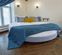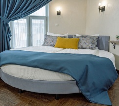 Гранд Люкс - это премиальный номер с дизайнерским уникальным интерьером, который представлен в единственном экземпляре. Общая площадь номера составляет 45 кв. метров и разделена на 2 зоны: просторная спальня с круглой кроватью «Super king size», джакузи с гидромассажем и электрическим камином, а так же кухня - гостиная с панорамным окном на историческую улицу города Гатчины.