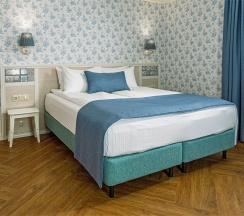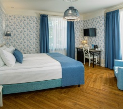 Все номера категории «Деревенский Прованс» оборудованы роскошными кроватями «Queen size» или двумя раздельными кроватями, а так же креслом-кроватью для дополнительного размещения. Номер, площадью 24 м2, удобно разместит до 3-х гостей.