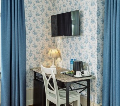 Уютный номер в небесных тонах с новым, современным дизайном в стиле "Прованс". Номер обустроен всеми удобствами для комфортабельного отдыха: шторами, не пропускающими дневной свет "блэкаут", кондиционером , Smart TV, холодильником, чайником, ортопедическим матрасом средней жесткости, сатиновым постельным бельем, мягкими махровыми полотенцами, плотными мягкими одноразовыми тапочками, зубным набором, шапочкой для душа, расческой, гелем для душа, шампунем, мылом, холодильником, чайником, чайным набором с тремя сортами чая, кофе, сахаром, стаканами, бутилированной водой. Так же номер оснащен просторным санузлом с окном.