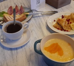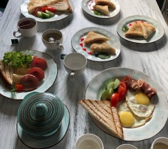 Не пожалели, что взяли завтраки. К назначенному времени нам накрыли столы в комнате с камином. Вкусно, сытно, красиво.