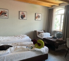 Единственный нюанс-лучше бронировать напрямую через них и уточнять детали , потому что на разных сайтах фотографии отличаются и есть путаница в фото и категории номеров. По этой причине нас сначала заселили в семейный супериор (трехместный номер) на первом этаже с крошечным окном под потолком. Номер просторный, тихий, с окнами во двор, но есть ощущение нахождения в трюме корабля. Сказали об этом администраторам, они вошли в наше положение и предложили через пару дней переселиться в другой номер с большими окнами и видом на Машук, без доплат. Было приятно)