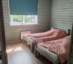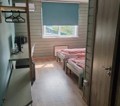 Комната категории стандарт, оборудованная всем необходимым для комфортного проживания. В комнате: две полутороспальные кровати, кондиционер, холодильник, телевизор, микроволновка, фен, чайник и собственный санузел с душем.