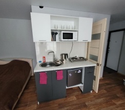 Искали поздно вечером жилье.так как поздно возвращались с гор компанией,позвонили и нас сразу же заселили в теплые и уютные номера.Хозяин дружелюбный и общительный, ответил на все вопросы и порекомендовал куда нам можно ещё сходить на следуюий день.С выездом не торопил.В номере есть всё необходимое для приготовления того же самого завтрака ,что очень удобно,хоть чаю попить,хоть кашу сварить.Постельное бельё чистое, полотенце чистые и щетки даже одноразовые были.Так что проживанием довольны все наши туристы