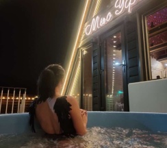 Очень классное место для отдыха. Были втроем с подружками. Новый домик, чистый, уютный, баня и чан прекрасны, жаркие, раза три в чан сходили точно. Все есть и полотенца и шапочки, тапочки и веник можно купить и посуда и холодильник. Очень стильный интерьер, отдохнули душой. Хочется вернуться еще. Спасибо хозяину за чудесные место и ехать далеко не надо.