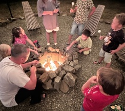 Вечера у костра ( дети готовили маршмеллу) родители отдыхали на террасе.