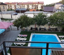 Понравилось: Отличный гостевой дом, приветливая хозяйка и доброжелательный персонал! Номер просторный и чистый, отдыхали в троëм, было комфортно. Из балкона красивый вид на двор и бассейн. Территория чистая и ухоженная, цветы придают домашнюю и уютную атмосферу. Отличный бассейн и красивая ночная подсветка. На кухне имеются все необходимые принадлежности и отдельная мангальная зона. Также при гостинице есть отличное кафе, где вам смогут приготовить вкуснейшие шашлыки, на любой вкус и не только. Мы заказывали форель с картошкой на углях, она получилась великолепной, пальчики оближешь, за это отдельное спасибо шашлычнику. В общем если вы планируете хорошо и комфортно отдохнуть, то вам однозначно стоит рассмотреть этот гостевой дом, рекомендую.