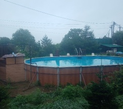 Так же есть внешняя территория с бассейном и волейбольной сеткой(вдруг для большой компании этот момент будет актуален))