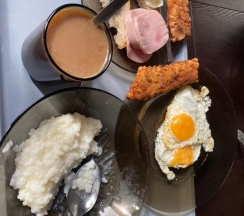 -завтраки вкусные!! Горячие, свежие, вкус как в детстве. Тот самый пышный омлет и каши! Кстати, столовая- это отдельный большой корпус, что тоже хорошо! И в столовой есть уголок с развлечениями от книжек до настолок.