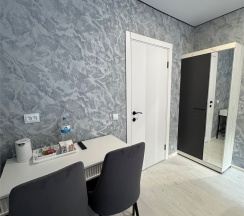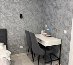 Все понравилось, очень чисто, удобное расположение. В номере была вода, чайник, чай, чашки. Новая сантехника. Можно останавливаться на длительное время.