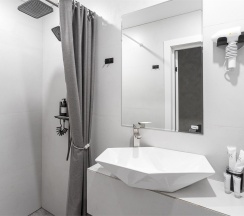 Нашей паре достался новый шикарный номер на третьем этаже, после ремонта!!! Мне нехватило полотенцесушителя, и вообще места где можно посушить носки и белье, да и одежду после дождя. Ребята подумайте об этой мелочи, реально не хватает места куда кинуть подсушить вещи. Так же вешал в шкафу мало, но это лично мне))). Завтрак в гостевом доме не предусмотрен, зато есть кофемашина, рядом есть гостиница Турист где можно заказать завтраки, недалеко Спар и кофе кондитерские, где вкусные круасаны, а в номерах все есть, для того чтобы позавтракать.