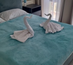 Нашей паре достался новый шикарный номер на третьем этаже, после ремонта!!! Мне нехватило полотенцесушителя, и вообще места где можно посушить носки и белье, да и одежду после дождя. Ребята подумайте об этой мелочи, реально не хватает места куда кинуть подсушить вещи. Так же вешал в шкафу мало, но это лично мне))). Завтрак в гостевом доме не предусмотрен, зато есть кофемашина, рядом есть гостиница Турист где можно заказать завтраки, недалеко Спар и кофе кондитерские, где вкусные круасаны, а в номерах все есть, для того чтобы позавтракать.