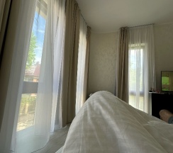 Красивый и комфортный гостевой дом. Современный дизайн и мебель качественная, мягкая. Кровати удобные. Оставались на ночь, все понравилось. Также есть вай фай, что очень было важно для меня