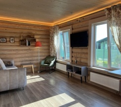 Отличный домик для того, чтобы провести время в дружной компании. Скучать точно не придется, ведь можно пожарить мясо и посетить сауну. А рядом на территории есть много интересных мест куда можно сходить и здорово провести время.