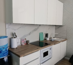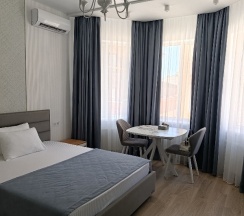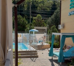 Отдыхали в конце июля 2025года. Замечательная гостиница! Просторные номера в прохладных пастельных тонах, что очень приятно в жару. Всё есть и все работает. Ежедневная смена полотенец. Уборка. Отдельные полотенца для бассейна. Халаты, тапки, шампунь, гель, кондиционер,зубная паста и щетки,сушка для белья,фен,сейф, телевизор смарт ( очень удобно!), кондиционер,посуда, холодильник, индукционная плита, вода в номере,удобный матрас, шторы блекаут... В общем,классно! Администратор Ирина и Юрий мгновенно реагируют на любые пожелания. Проблем во время проживания не было. Территория благоустроенная, оформлена со вкусом. Есть фотозоны. Кресла и столики. Бассейн отличный, шезлонги мягкие, зонты. Бассейн ежедневно чистят. Что очень приятно! Криница апарт расположена в двух шагах от моря. Дорога к пляжу по санаторному парку( очень комфортно!). Есть где прогуляться. На пляже, естественно,напитки, снеки, фастфуд, два кафе (в "Лукоморье" детское меню!). И зонты, и шезлонги, и бунгало. Честно, не ожидала такого комфорта в селе. Очень довольны! Море чистое. В отеле тишина, простор, умиротворение. Олеандры благоухают. Приедем ещё! Рекомендую!