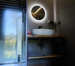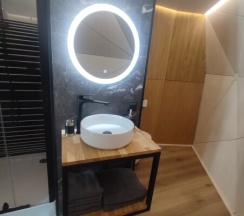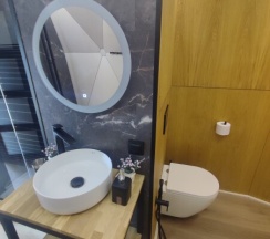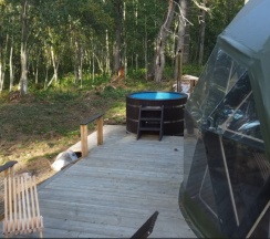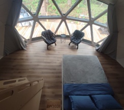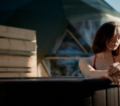 Сфера «Люкс» — это 50 кв. м. уюта и уединения для тех, кто ценит атмосферу отдыха на природе. Просторное светлое пространство, продуманное оснащение и собственная терраса делают проживание здесь по-настоящему комфортным. Главная особенность — чан со столиком под открытым небом: идеальное место, чтобы расслабиться, насладиться горячей водой и провести душевный вечер с бокалом вина или чаем в руках.