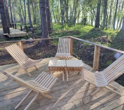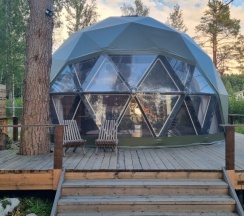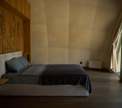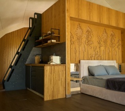 Сфера «Делюкс» — это просторное и стильное пространство для тех, кто хочет совместить комфорт и единение с природой. Уютная обстановка, продуманная мебель и собственная терраса с купелью создают атмосферу отдыха премиального уровня. Здесь можно наслаждаться уединением, встречать рассветы с видом на озеро и проводить вечера в кругу близких у мангала.
