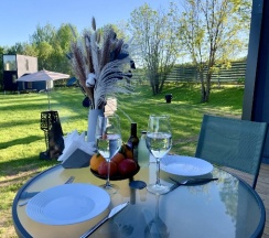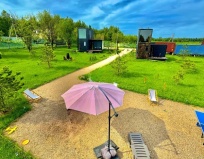 Отдыхали в этом месте не первый раз. Все супер! В этот раз особенно порадовало наличие стартера для углей. Так же в наличии решетка для барбекю и шампуры. Домики очень симпатичные и просторные со стильным оформлением. Огромный санузел и удобная кухня со всем необхожимым. В этот раз разведали окрестности - до пляжа на водохранилище ехать 5 минут на машине. Вобщем всем рекомендуем этот глэмпинг. Пока минусов вообще нет. Идеально.