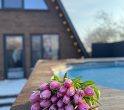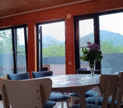 Уютный атмосферный дом для большой компании или семьи! С невероятным видом на горы! А, главное, здесь есть теплый круглогодичный бассейн! Идеально для отдыха на несколько дней!