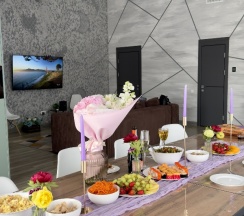 Отдыхали с коллективом 7-8 июня. Отдых получился замечательный, прекрасное место, очень уютно, чисто, созданы все условия для комфортного отдыха, есть все необходимое на кухне, в ванной и т.д. Территория ухоженная, удобная мангальная зона, чистый хороший бассейн с термальной водой, имеется удобная парковка. Очень приветливые хозяева. Обязательно посетим ещё не один раз!!!!!