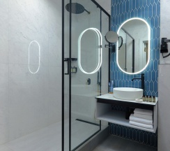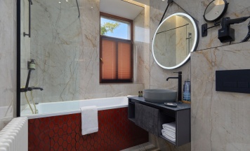 Стильный дизайнерский двухкомнатный номер оборудован всем необходимым для того, чтобы гости могли почувствовать себя комфортно и уютно. Площадь номера: 50 м2. Современная удобная мебель и отличная звукоизоляция создает идеальные условия для отдыха в центре города. В номере предусмотрена ванная комната, оборудованная душевой кабиной и большой ванной, имеется фен, халаты, тапочки, косметические и туалетные принадлежности. В номере есть мини-бар, бокалы, штопор, гладильная доска, чайные принадлежности, электрический чайник и капсульная кофемашина. Номер оборудован кроватью 180*200 с итальянским матрасом LORDFLEX и диваном 140*180. Смена постельного белья и полотенец производится раз в 2 дня. Превосходные завтраки в ресторане "Либерия" на 1-м этаже по меню