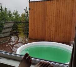 Если вы хотите проснуться с красивым видом из окна, при этом выспавшимися и отдохнувшими потому что спать вы будете на очень большой кровати с идеальным постельным бельем на ортопедическом матрасе и со свежим сосновым воздухом, то Зайка.лес это ваш вариант!!!Красивое, спокойное, уютное и комфортное место с большой охраняемой территорией для отдыха!!!Брали очень симпатичный домик: новый качественный ремонт, чистота идеальная! В домике есть все необходимое и даже больше! На оборудованной кухонной зоне для любителей вкусного кофе есть даже кофеварка с капсулами, в гостиной комнате большой телевизор! спальня с панорамными окнами и конечно санузел с прекрасной душевой! Все на высоте! Естественно не смогли пройти мимо и взяли плюсом оборудованный гриль-купол, где приготовили вкуснейший ужин! Понравилось ли нам? Однозначно, ДА! А кто еще не был, обязательно рекомендуем побывать в этой волшебной атмосфере!