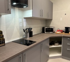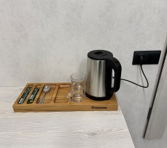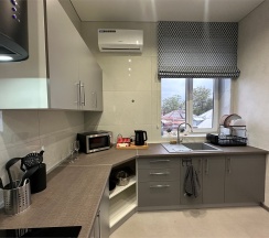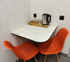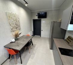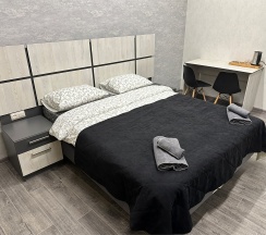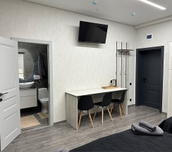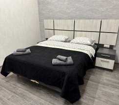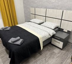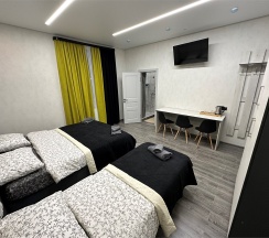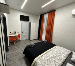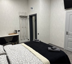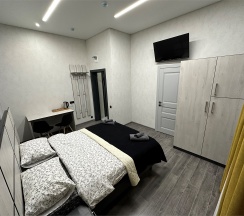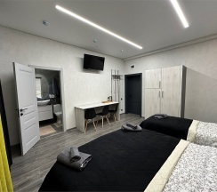 Отличная современная гостиница. Чистота во всех помещениях. Останавливались на одну ночь. От центра далековато, но на машине без проблем доехать за 5-10 минут в любую сторону. Гостиница находится в частном секторе, тишина. Рядом пара магазинов продуктовых. На первом этаже есть общая кухня со всем необходимым. Мы завтрак брали, выдают сухпайком, все свежее и вкусное, объем и разнообразие большое, все не съели, забрали с собой. Есть доска и утюг для глажки.